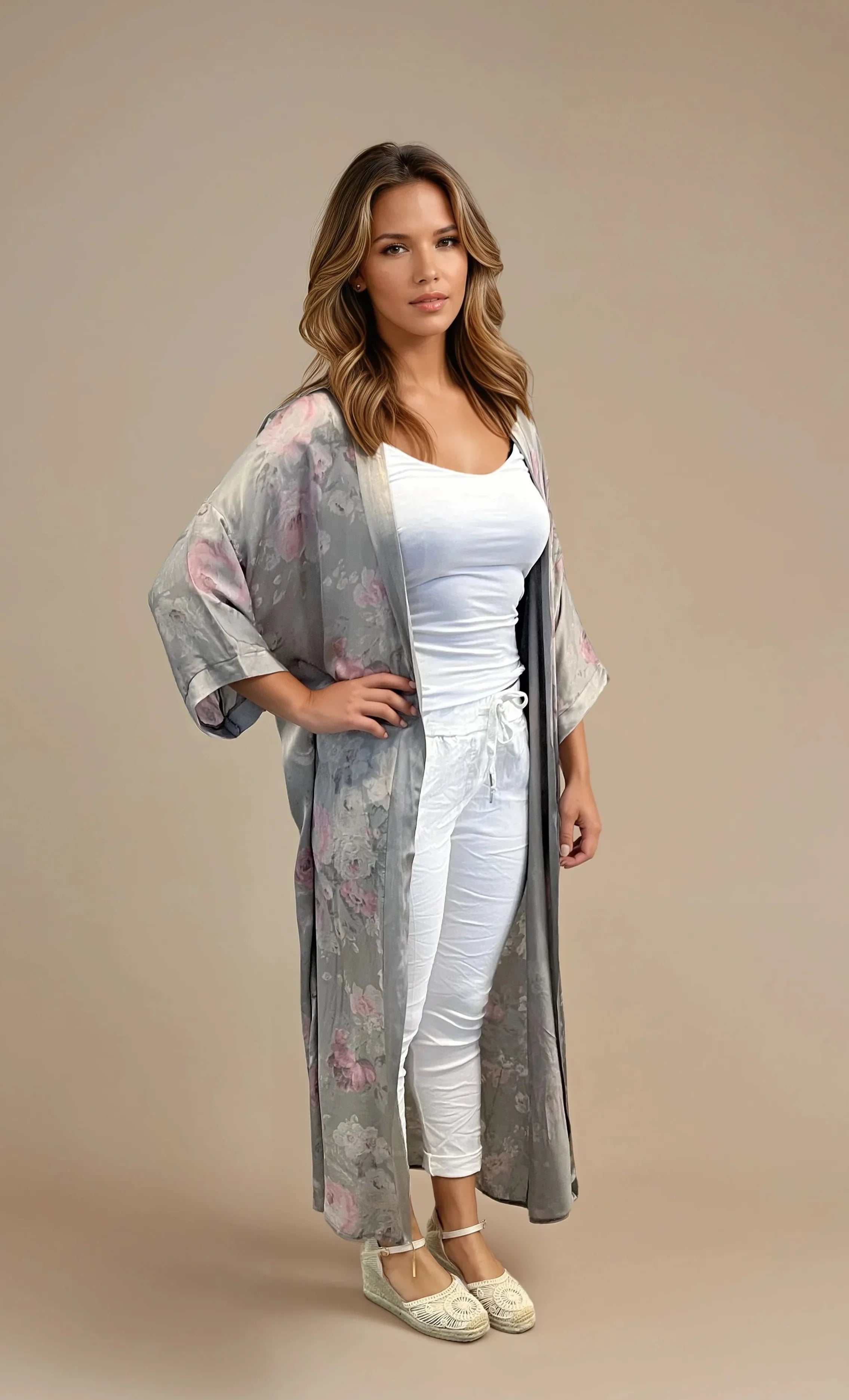 🌸 Long Kimono avec des roses - Made en Italie 🇮🇹