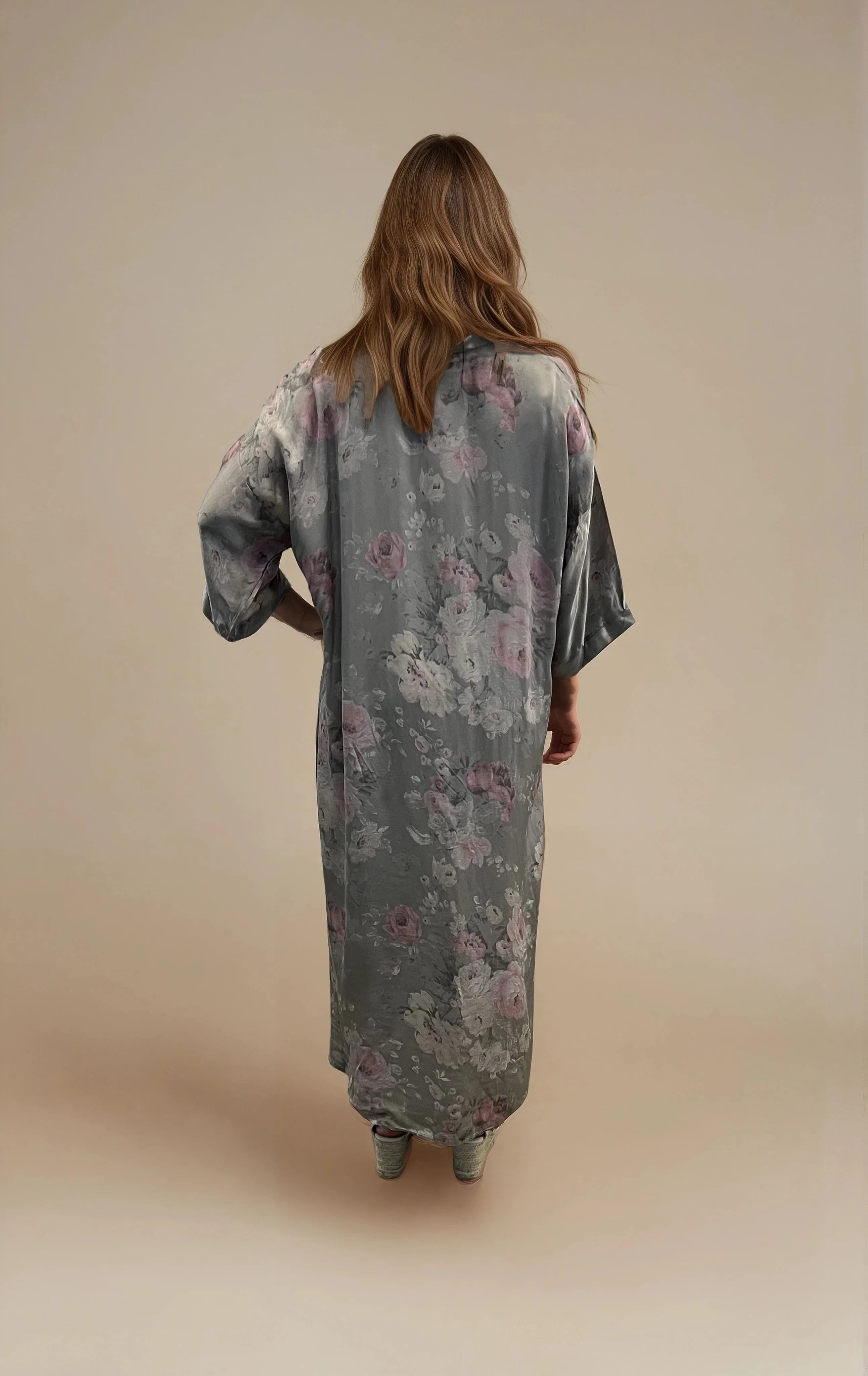 Kimono avec des roses taupe