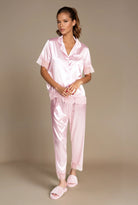 Pyjama en satin 2 pièces manches courtes rose