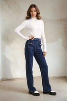 Ces Blue Wide Leg-Jeans de Redberry sont à la mode et confortable - un Doit dans la garde-robe d'automne! Avec Taille haute, poches élégantes à l'avant avec des boutons en argent décoratifs et Deux poches arrière Obtenez-vous un modèle de jean qui soulève chaque tenue.