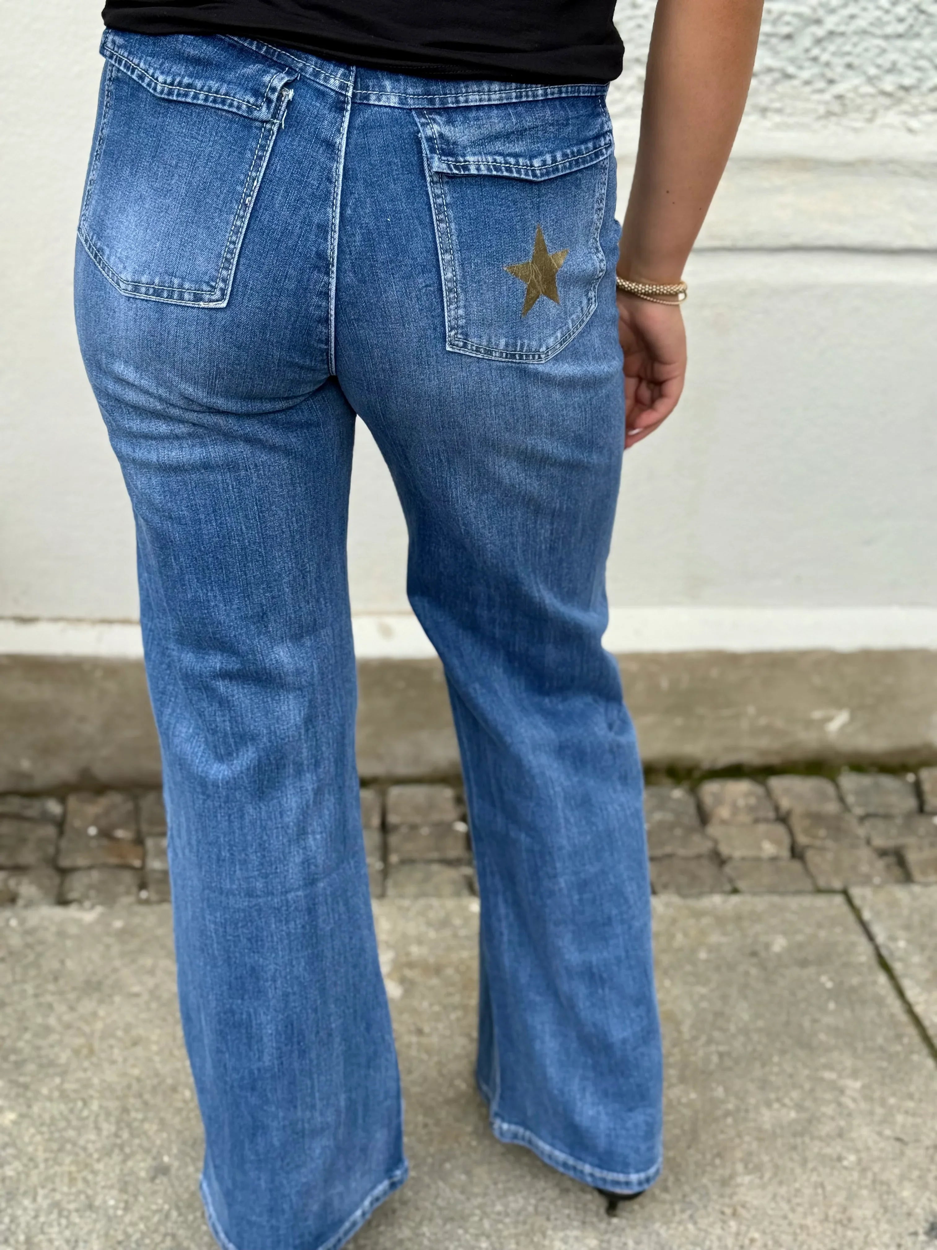 Les jeans ont une taille élevée et sont cousus dans un denim extensible pour le meilleur confort. Le Detail Golden Star en fait un vêtement de déclaration qui se dresse - si vous les coiffez avec des talons ou des baskets.