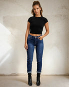 Ces jeans sont tout aussi élégants pour un simple t-shirt que pour un pull tricoté et deviennent rapidement un favori de la garde-robe.