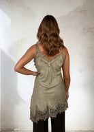 Linna Léa de Mirelle Design est un haut long asymétrique avec un magnifique bord en dentelle qui donne une sensation intemporelle et romantique. L'encolure en V sur le devant et la coupe douce et flexible rendent ce débardeur à la fois confortable et élégant - parfait à porter au quotidien et en soirée.
