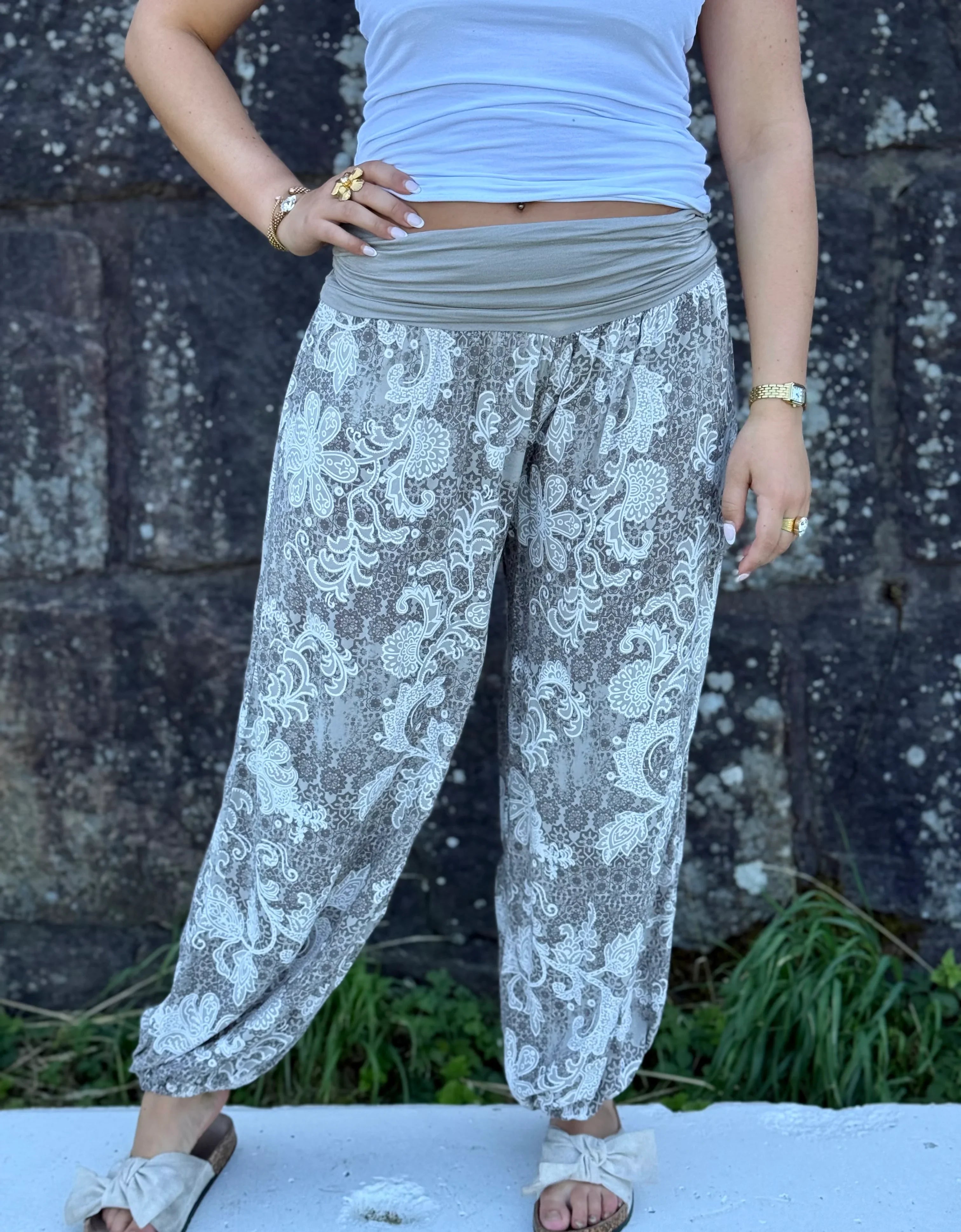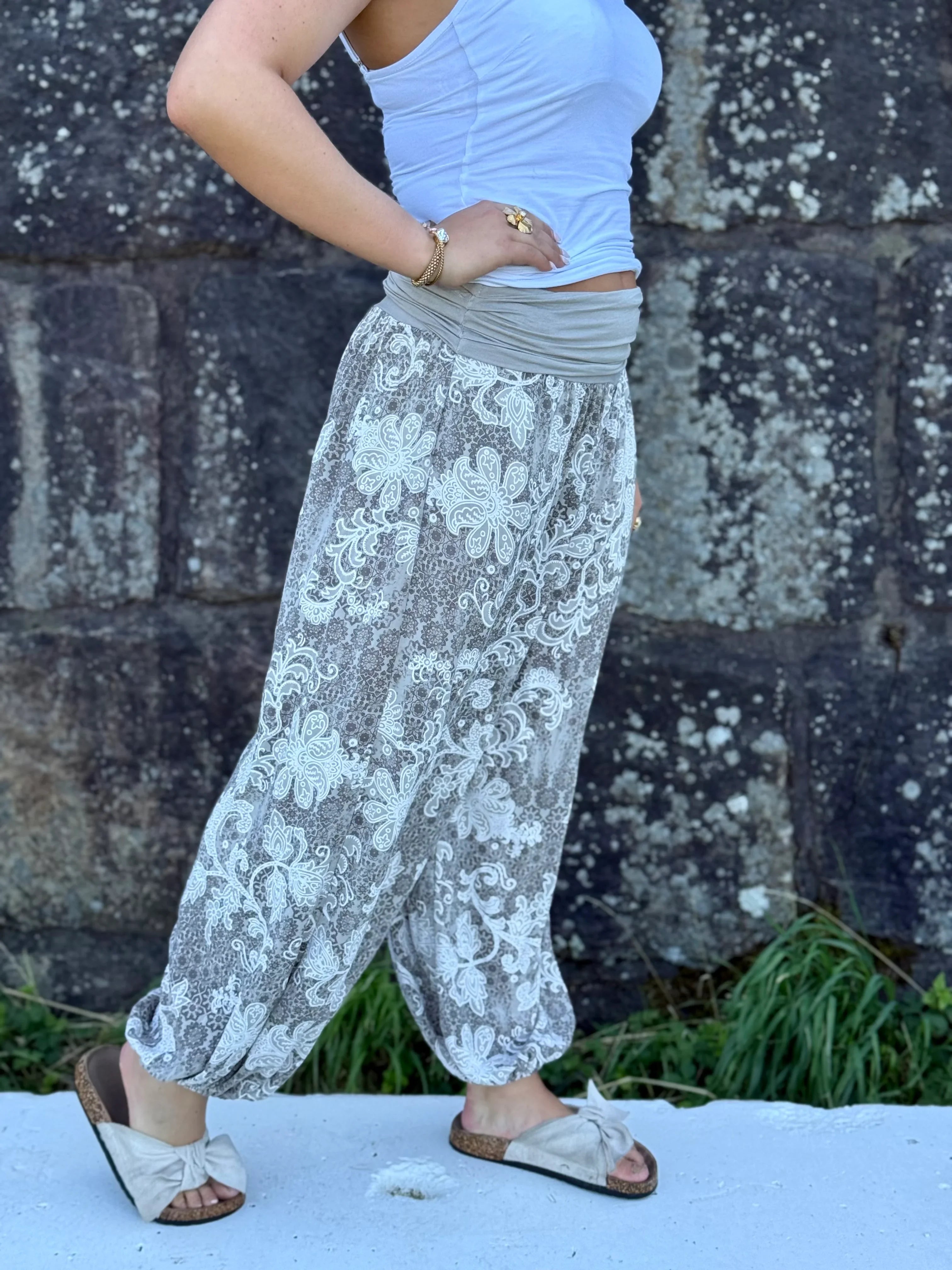 Pantalon sultan fantasy fleur beige