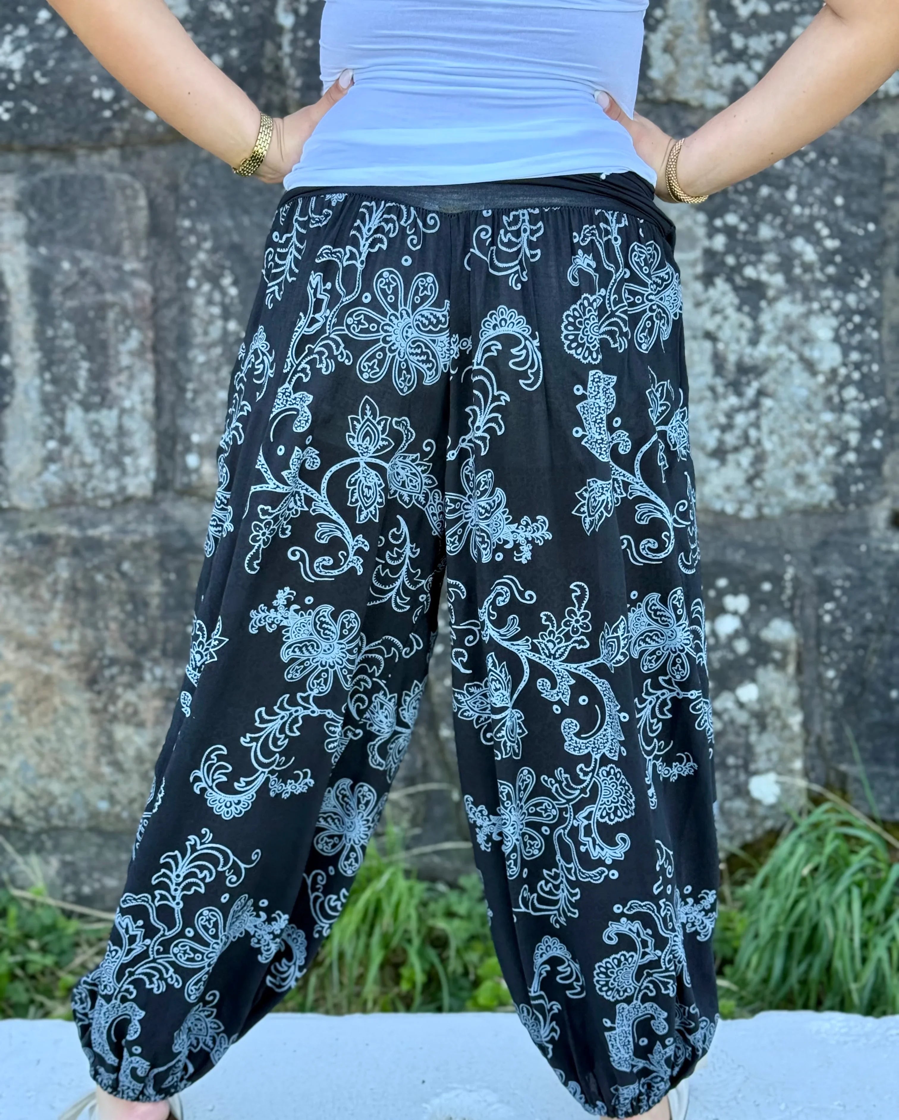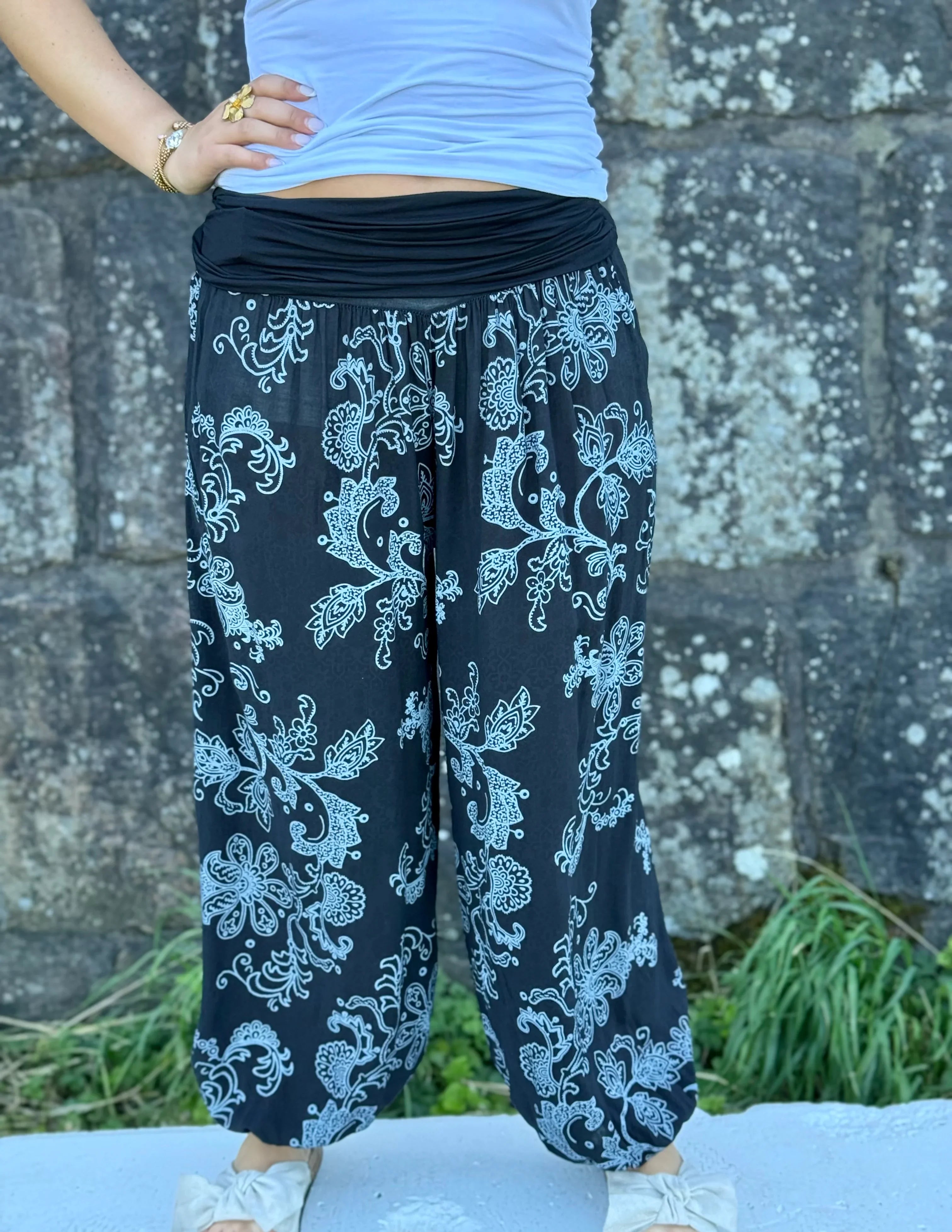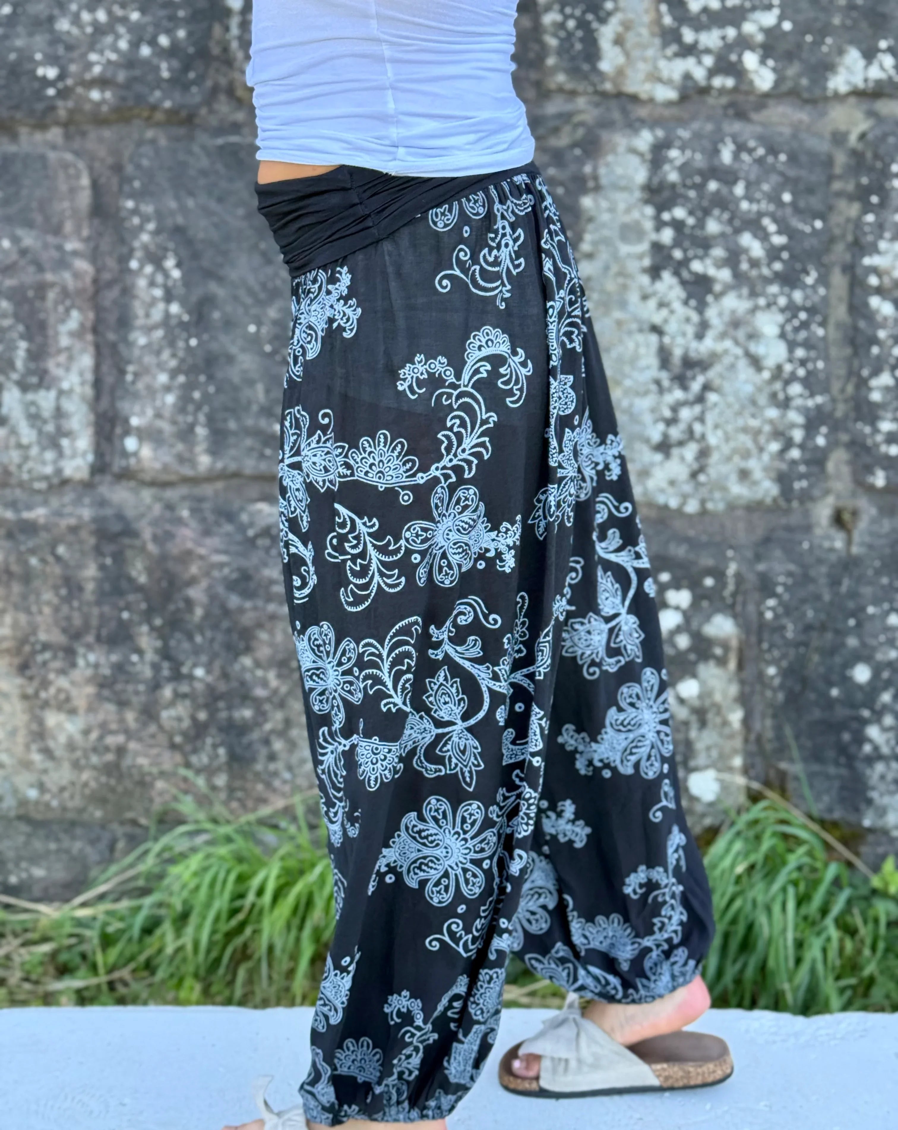 Pantalon sultan fantasy fleur noire