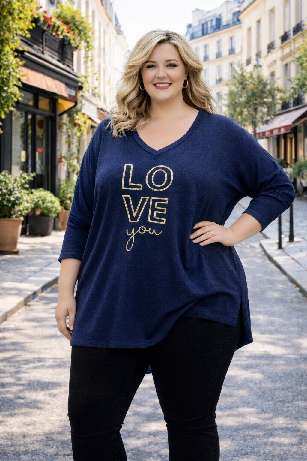 Il présente un décolleté en V féminin, des manches décontractées et une jolie coupe qui donne une expression douce et souple. Parfait à porter avec un jean, un legging ou un pantalon pour un look tendance et confortable au quotidien – mais fonctionne tout aussi bien lorsque vous voulez vous sentir un peu plus chic.