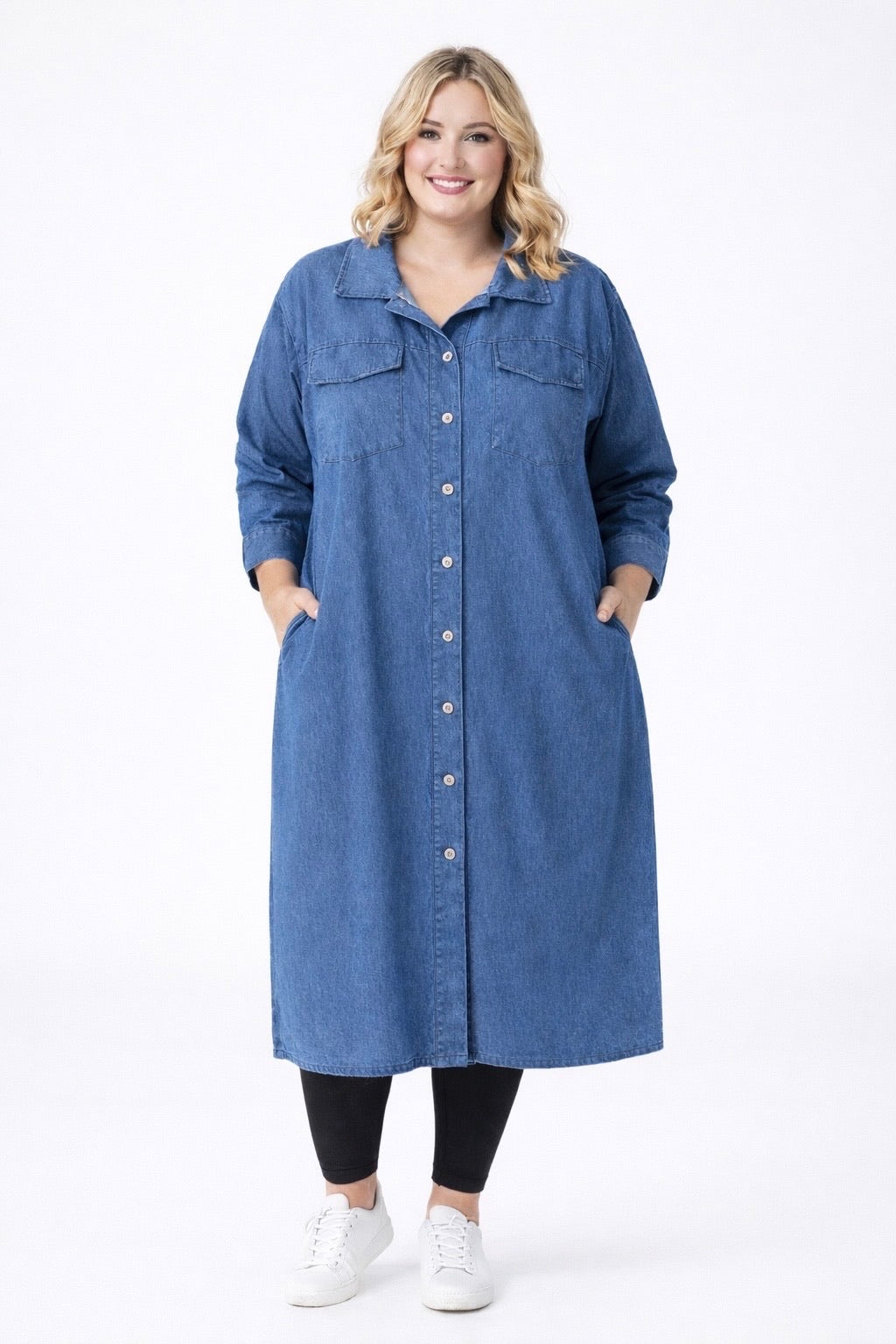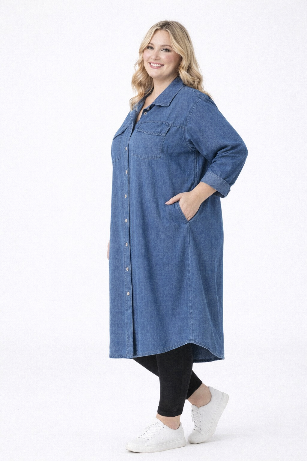 La robe chemise Lisa est une robe élégante et confortable inspirée du jean avec un design de chemise classique et une coupe généreuse. La qualité du coton doux et extensible le rend flexible et confortable à porter toute la journée.