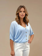 Un haut en tricot élégant et doux qui convient à la fois aux occasions tous les jours et plus festifs. Avec sa sensation aérée, ses belles chutes et ses beaux détails de bouton à l'avant, il devient rapidement un favori dans la garde-robe. 💫