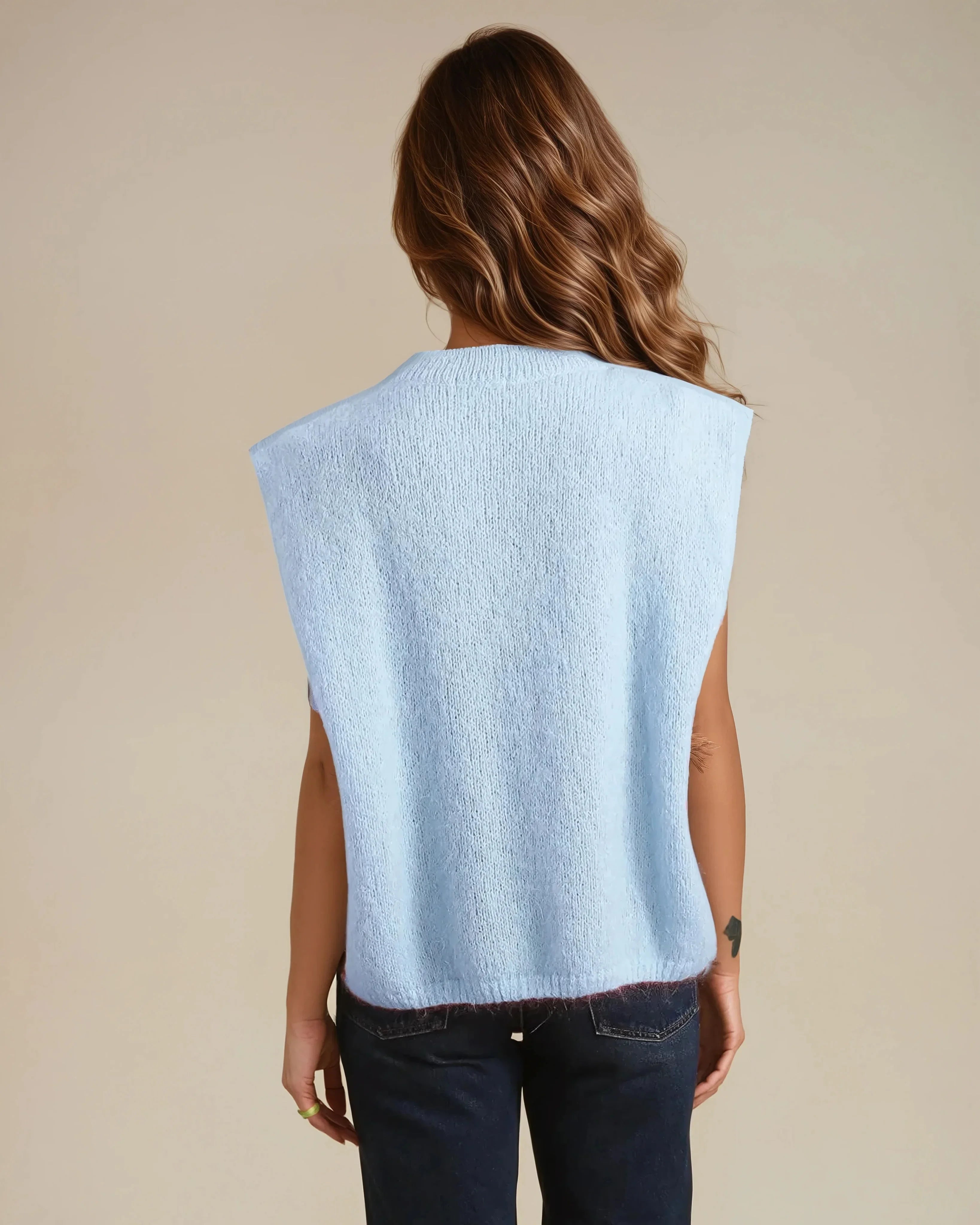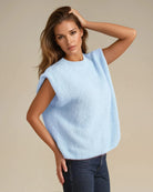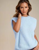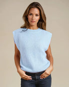 Sans manches rond-pull en tricot-tricot clair bleu clair