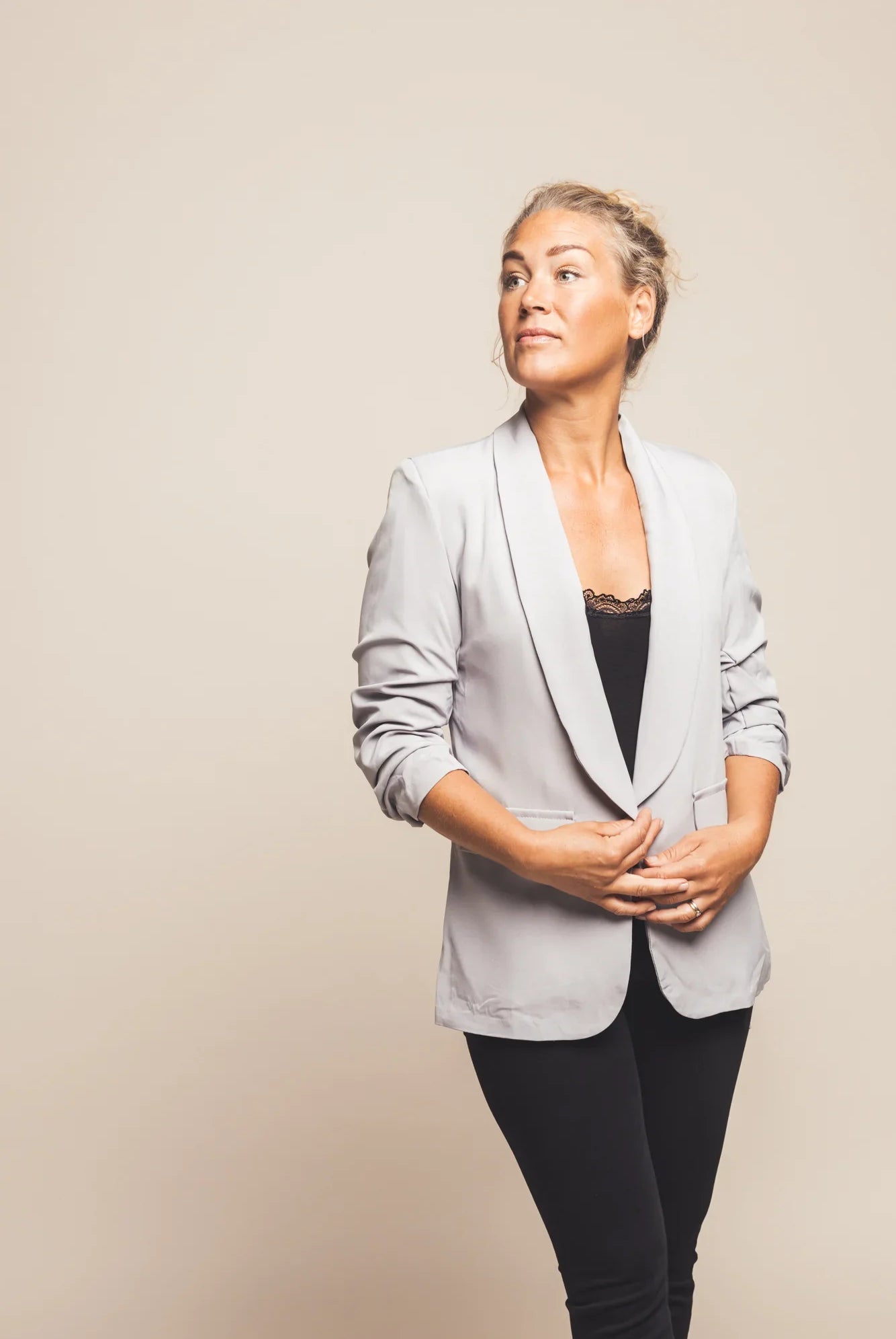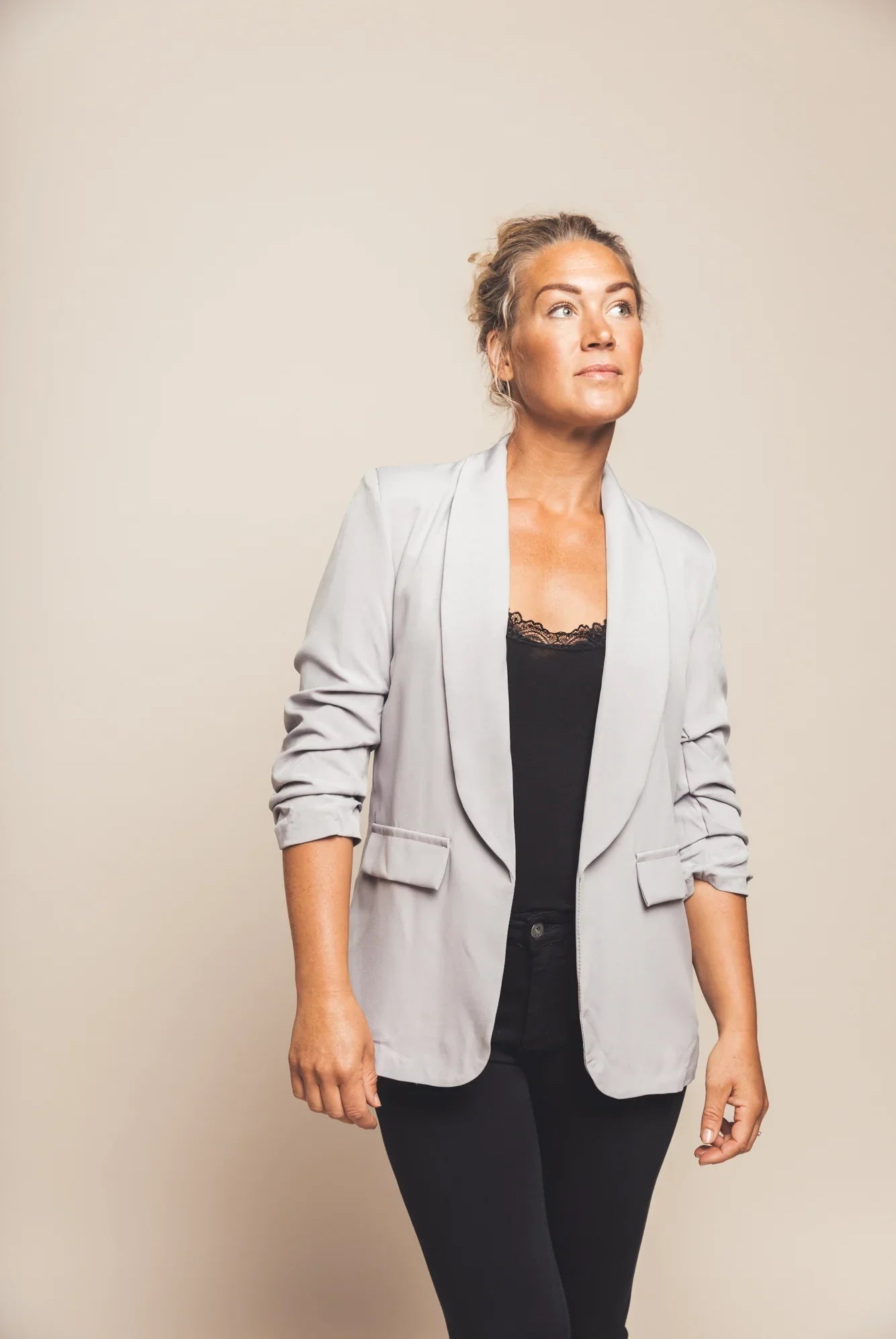 - Taille: La veste doit flatter votre taille sans se sentir trop serrée. Il doit s'asseoir suffisamment près du corps pour donner un aspect personnalisé tout en offrant une liberté de mouvement.