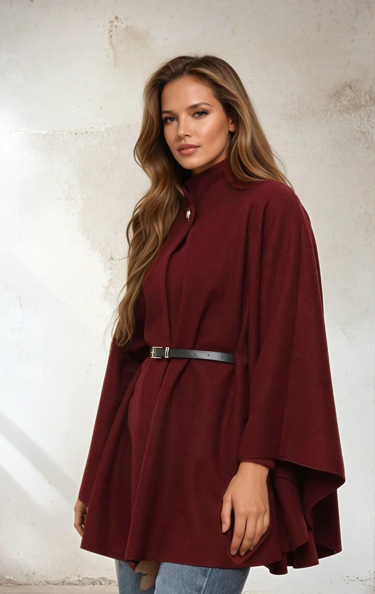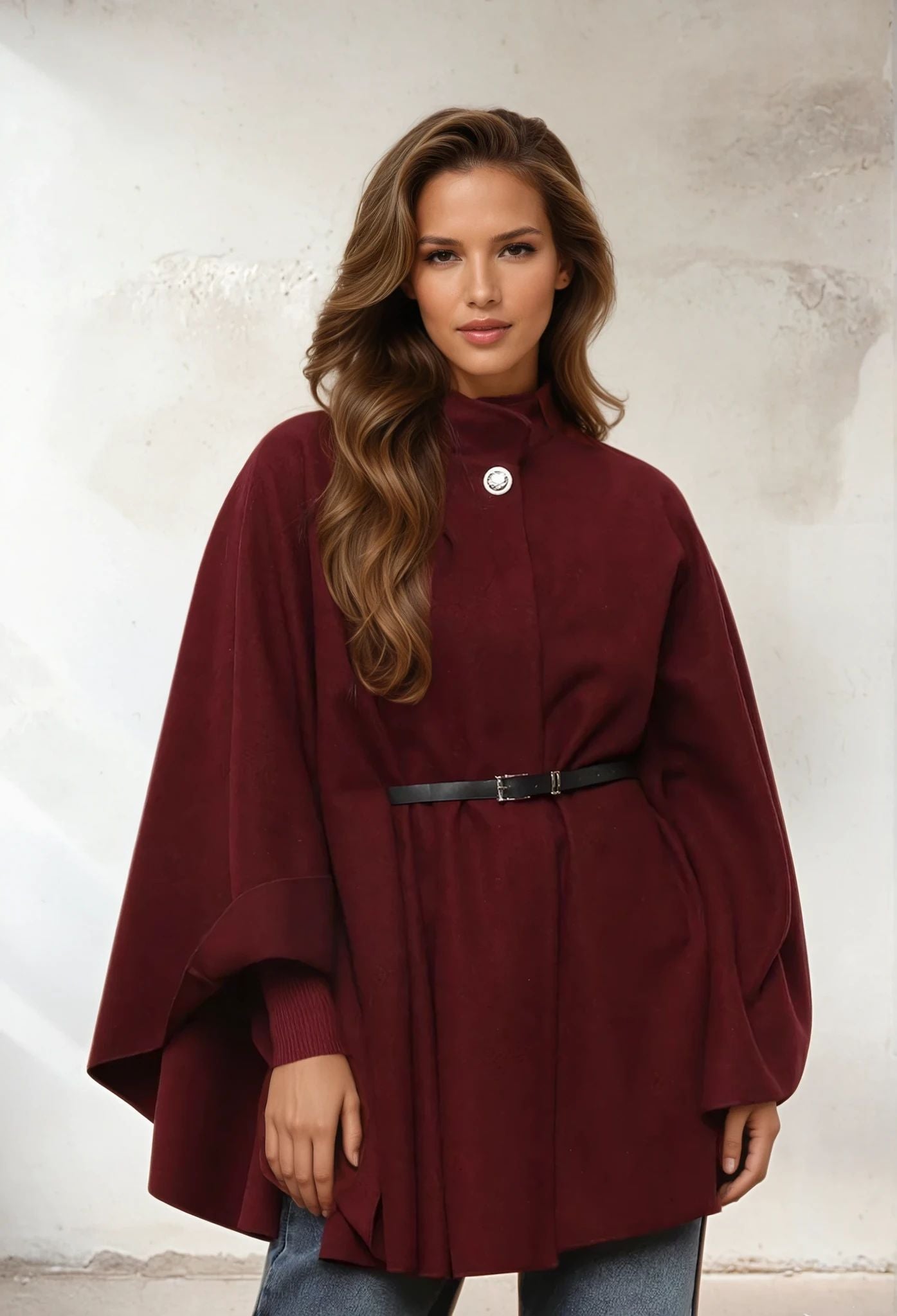 Une veste de cape en polyester élégante et intemporelle, conçue avec la taille dans la taille qui donne une silhouette flatteuse. Parfait pour l'automne, car il combine la chaleur et le style d'une manière détendue mais sophistiquée. Fabriqué en Italie, pour ceux qui recherchent un look chic et confortable.