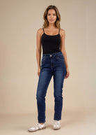 La haute teneur en coton rend le jean doux et confortable, tandis que l'élasthanne offre une liberté de mouvement – parfait pour l'automne et le printemps.