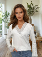 Top élégant et féminin avec de beaux détails en dentelle à l'encolure et aux extrémités des manches. Fabriqué en viscose douce et extensible qui donne un ajustement souple et une sensation soyeuse sur la peau.