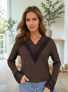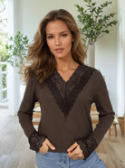 Top élégant et féminin avec de beaux détails en dentelle à l'encolure et aux extrémités des manches. Fabriqué en viscose douce et extensible qui donne un ajustement souple et une sensation soyeuse sur la peau.