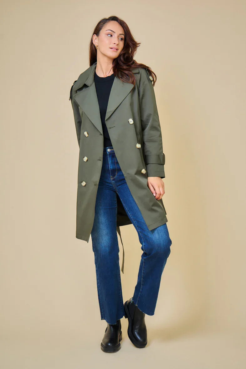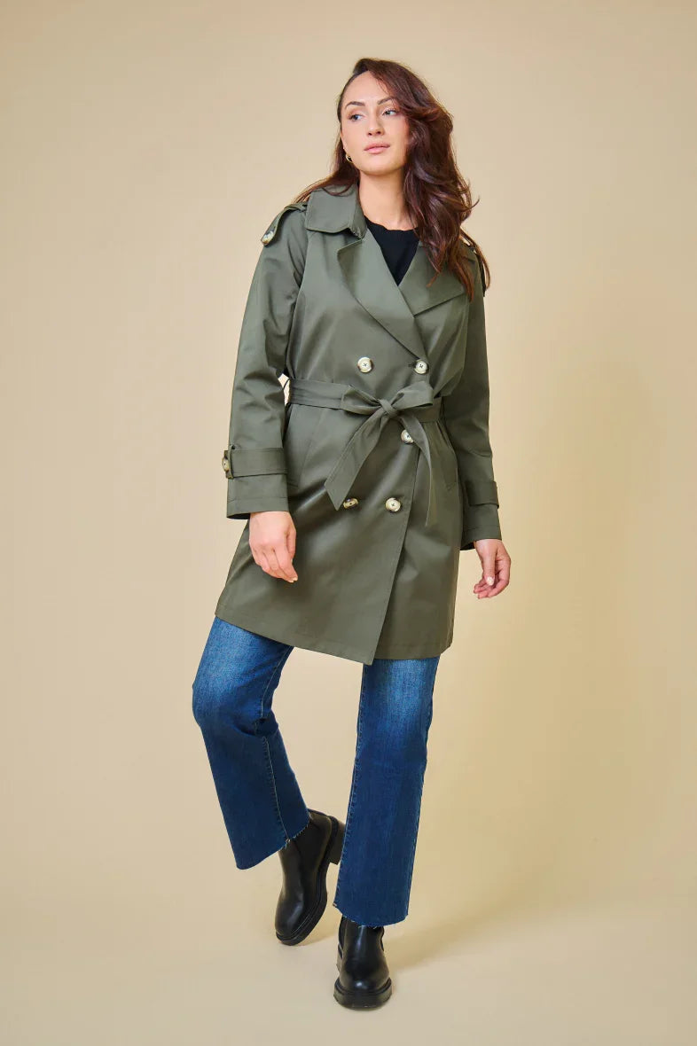 Gardez le style quel que soit le temps avec ce trench beige classique. Fabriqué dans un matériau hydrofuge, il protège contre les averses de pluie inattendues tout en fournissant une impression intemporelle. La coupe droite et la ceinture réglable à la taille accentuent la figure de manière flatteuse. Avec un collier élégant, une fermeture de bouton et des poches latérales pratiques, ce trench-coat est à la fois fonctionnel et élégant. Idéal pour les saisons de transition ou comme couche pendant les jours froids. Un vêtement polyvalent qui s'adapte à la fois tous les jours et plus formels.
