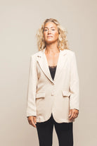 À l'avant, il est orné de boutons élégants et habillés et d'un bouton cohérent qui donne une sensation traditionnelle mais tendance. Avec son design droit et pelé, la veste Maggi offre à la fois un confort et une coupe intemporelle, parfaite pour ceux qui recherchent un look équilibré entre le classique et le moderne.