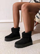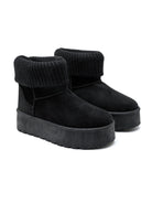 Restez au chaud avec style dans notre bottines avec revers, un favori hivernal parfait pour ceux qui souhaitent allier confort, fonctionnalité et design tendance. Ces bottes ont une tige en faux suède doux et une doublure chaude en fausse fourrure, ce qui les rend idéales pour les journées froides. Le revers tricoté autour de la cheville offre à la fois une chaleur supplémentaire et un look unique et confortable qui les distingue des bottes d'hiver classiques.