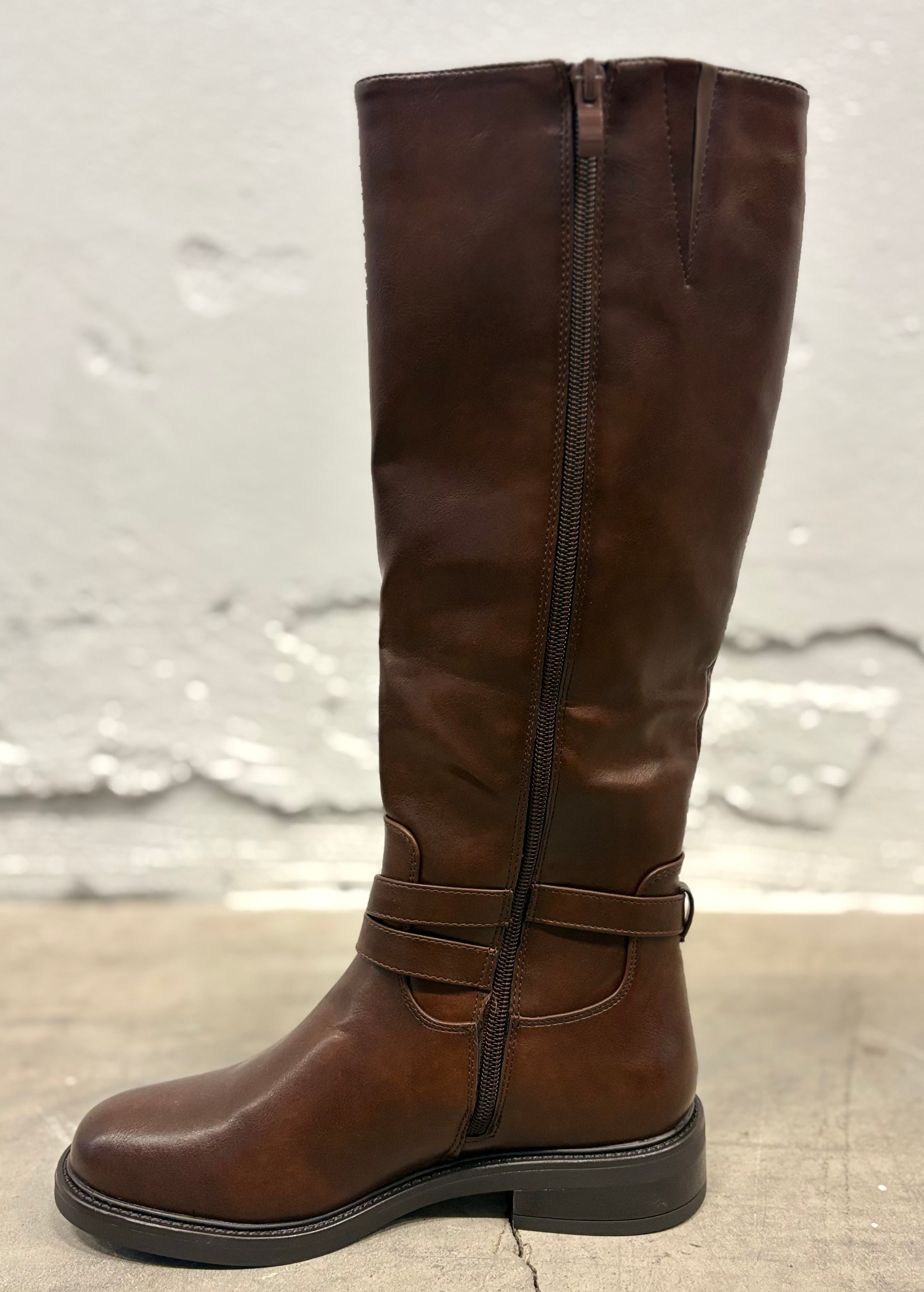 Eleganta och tidlösa stövlar med guldspänne som ger en lyxig touch till din vardagsstil. Dessa stövlar har en slät ovandel i skinnimitation med lätt patinerad finish som skapar ett exklusivt och klassiskt uttryck. Den dekorativa remmen runt ankeln, prydd med ett blankt guldspänne, blir en stilfull detalj som lyfter hela designen.