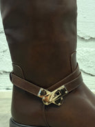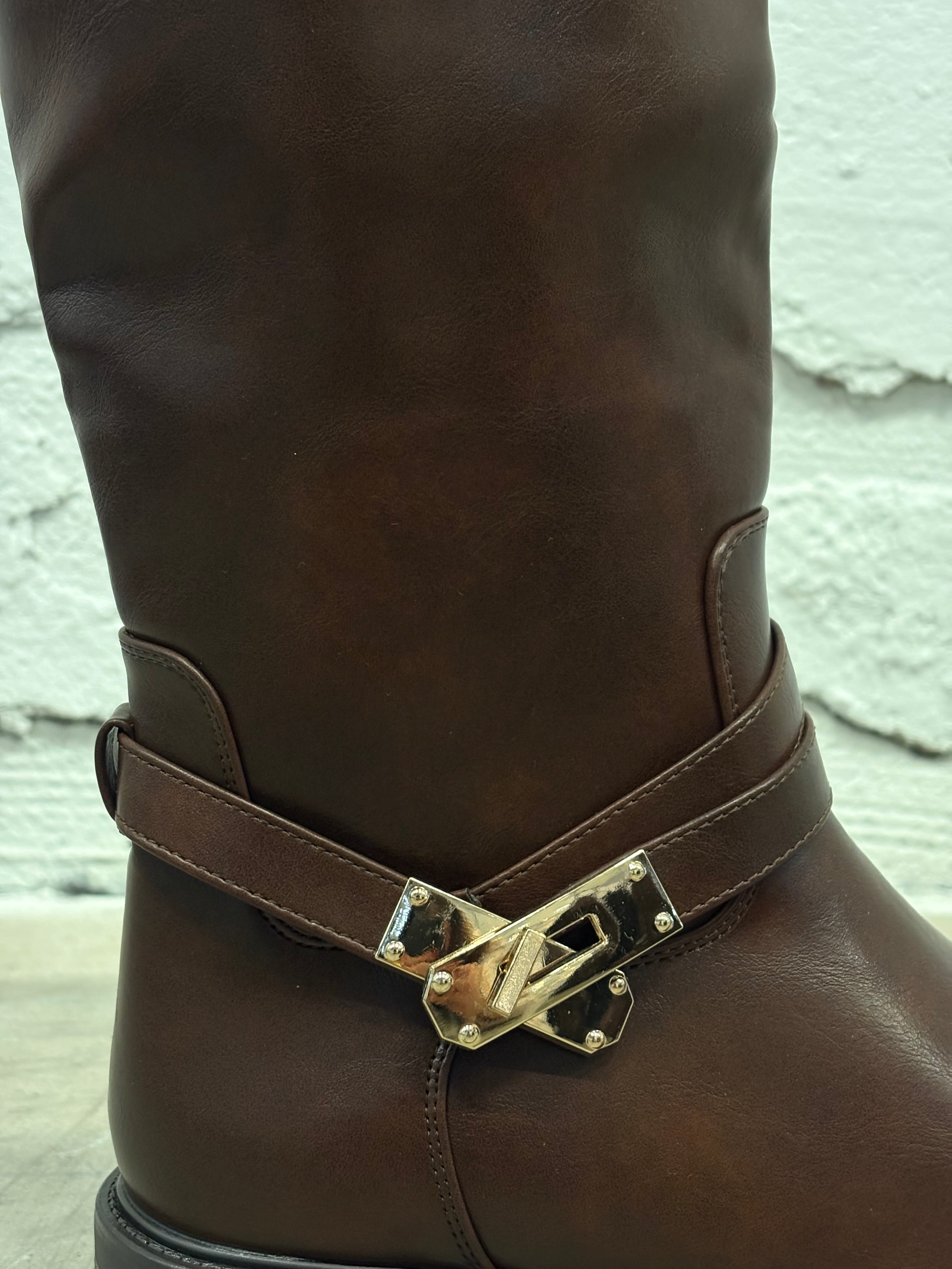 Stövlar med guldspänne bruna